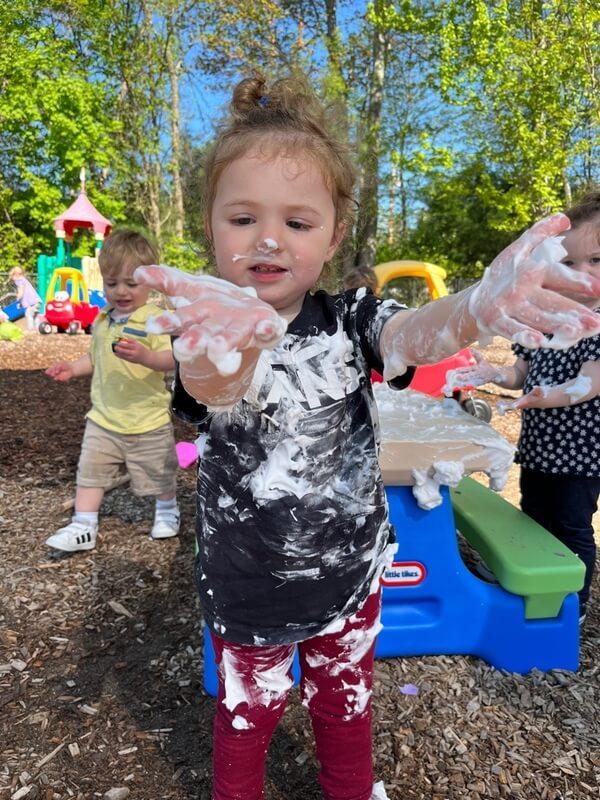 Learning through play is children’s natural response to the environment around them. Children will experience motor skills like running, jumping, catching, and skipping. Outdoor play can guide social skills and relationships and children will develop problem solving skills, team work, cooperation, confidence, and of course gross motor skills during outdoor play.